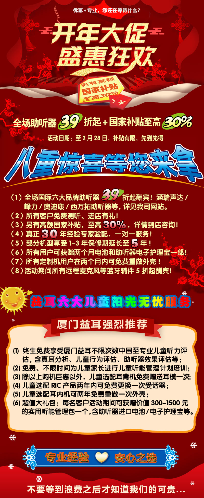 现厦门益耳儿童助听器正在火热促销中,详情如下:
