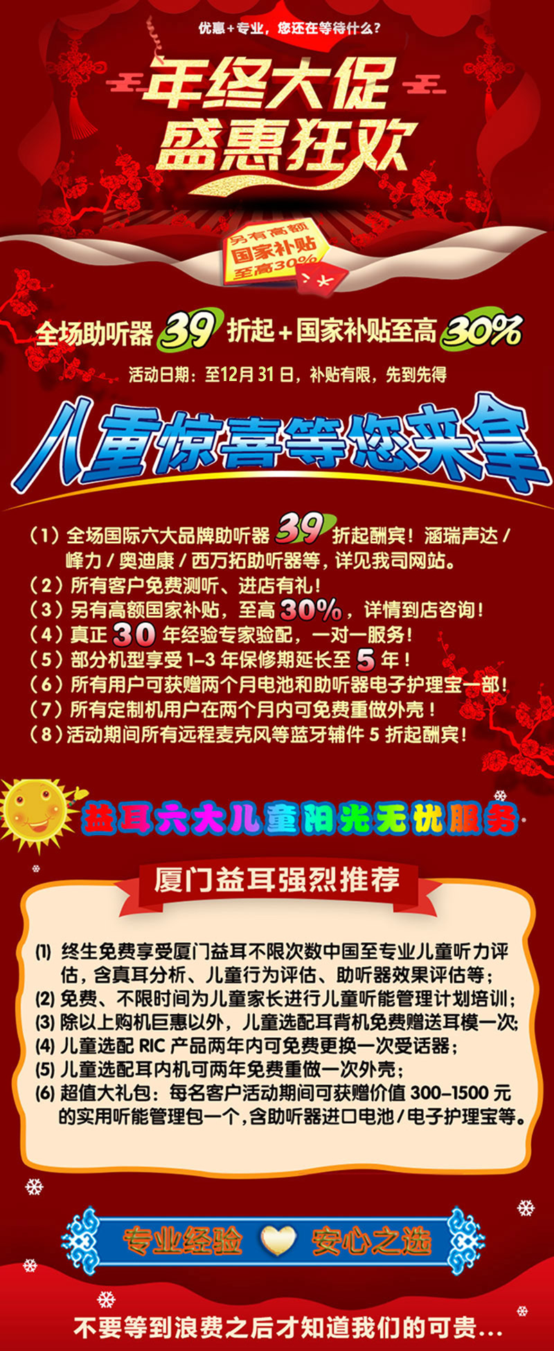 厦门助听器年终促销全场39折起+国家补贴至高30%!